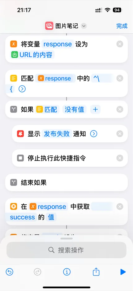 预感,同时也预防着老爷机未来某天突然挂壁,最近也在想解决办法。这几年慢慢主力机用回了iPhone,暂时未来一段时间也不想再考虑安卓备用机。于是也就有了现在这条笔记,iPhone备忘录记录,快捷指令发布。极简实用主义,简简单单就好,不想注册苹果开发者账号,也不想搞Swift开发App,简简单单用自己最顺手的工具来达成目标。同时,iCloud同步保证基本的数据安全,整个流程也算是足够的丝滑了。