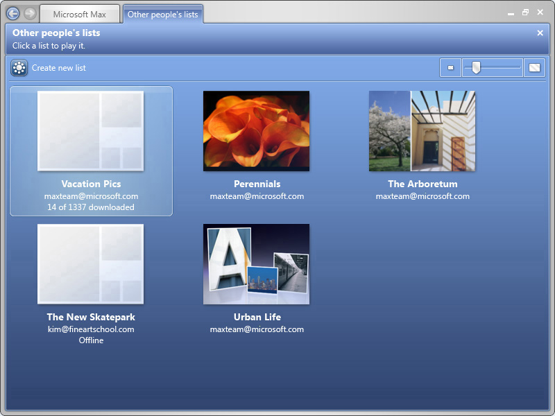 Max是Microsoft 05年发布的一款相册管理/共享软件,记得它刚发布的时候我就想用来着,没有太多的原因,仅仅是因为它的UI十分之漂亮。不过由于需要Win Vista以及WinFX支持,所以这东东一直拖到现在才被偶宠幸,哈哈。为了这个东东,我专门又装了一个WinXP,因为它需要.Net FrameWork 3.0的支持,而目前我主要的工作环境是1.1,于是便造成了昨天所说的“三足鼎立”。