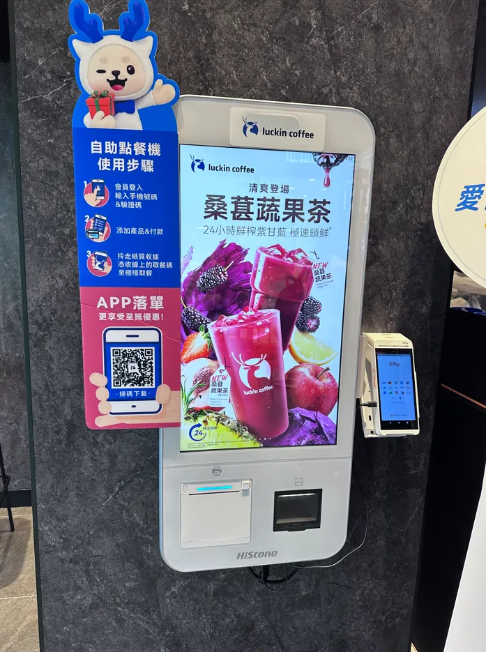 上2周,去钻石山办事,地铁站出来就见到瑞幸门店,进去来了一杯,体验一如既往的秒杀星巴克。当然,入乡随俗,店里多了一个自助点餐机。